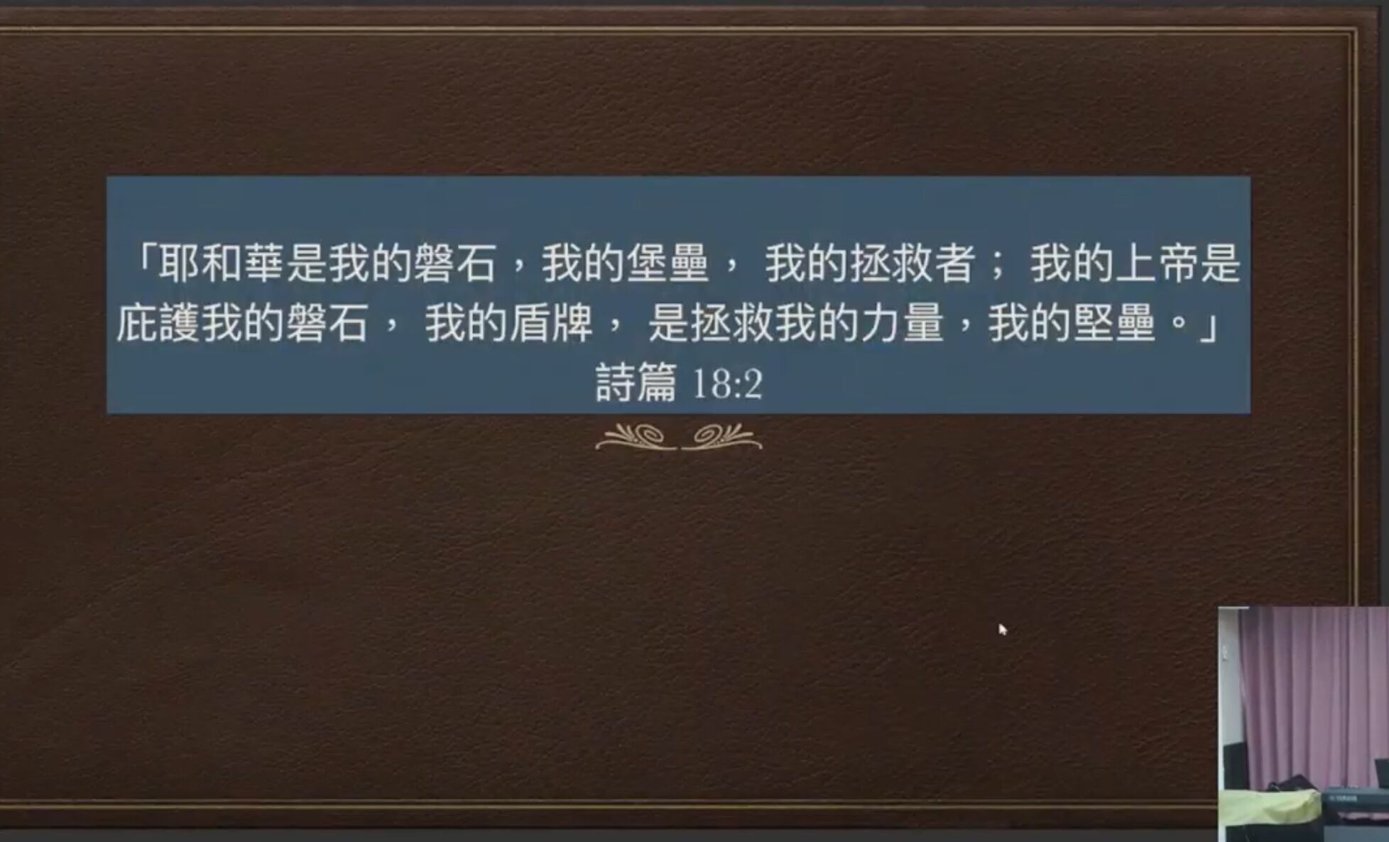 那在這邊呢,感謝主喔。就是這一個經文呢,耶和華是我的磐石、我的堡壘、我的拯救者。然後我的上帝是庇護我的磐石、我的盾牌、是拯救我的力量、我的尖雷。這是今天呢,首要分享給大家的經文。然後,其實我在出生15天,我的父母因為他們的婚姻的問題,