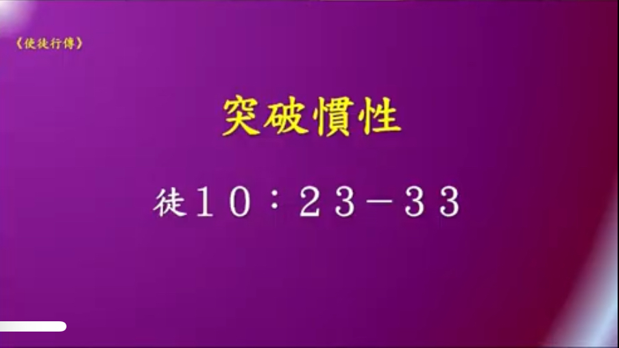 各位弟兄姊妹,這是彼得,彼得有習慣性的生命,但神要服事他。祂有所突破,就是要預備祂從猶太人的文化當中能夠跳脫出來,從祂所習慣接觸的猶太百姓當中也能夠有所突破,聖靈就是要預備彼得走向外邦。弟兄姊妹,我想不僅是彼得,應該在你我的身上,神也都願意,而且必要做這樣的工作,使我們的生命有所突破,因為神要讓我們活出豐盛的生命來。
