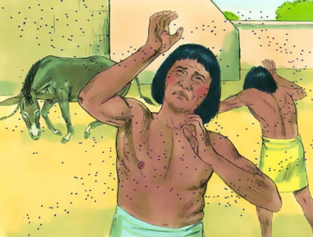 第四個是蒼蠅,到今天埃及還是很多蒼蠅,有個地方更多,聽說泰北很多,我不曉得最近回來有沒有很多,有一個媽媽她說去埃及,不是去埃及,去泰北,去泰北還是去哪裡,我忘了,她說那個地方的人,吃飯都是白米飯上面加上很多的藕刀啊,她再仔細看,不是是蒼蠅,聽說埃及到現在還是很多的蒼蠅,