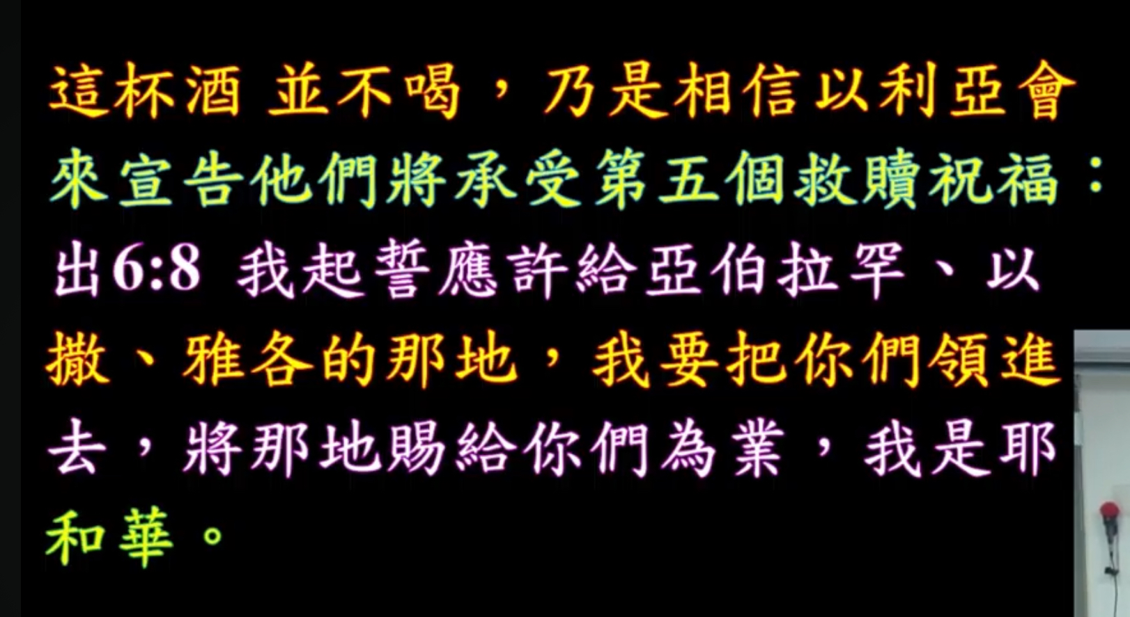 我說他們笨到極點,他們比我們更敬淺,你們當中有哪一個人守逾越節的,有沒有,連劉牧師跟我都沒有,我沒有沒關係,我是他的分堂嘛,他都沒有守逾越節,周牧師也沒有守逾越節,對不對,弟兄姐,這杯酒他們不喝,等以利亞來再喝,一起來宣告出埃及記第六章第八集。