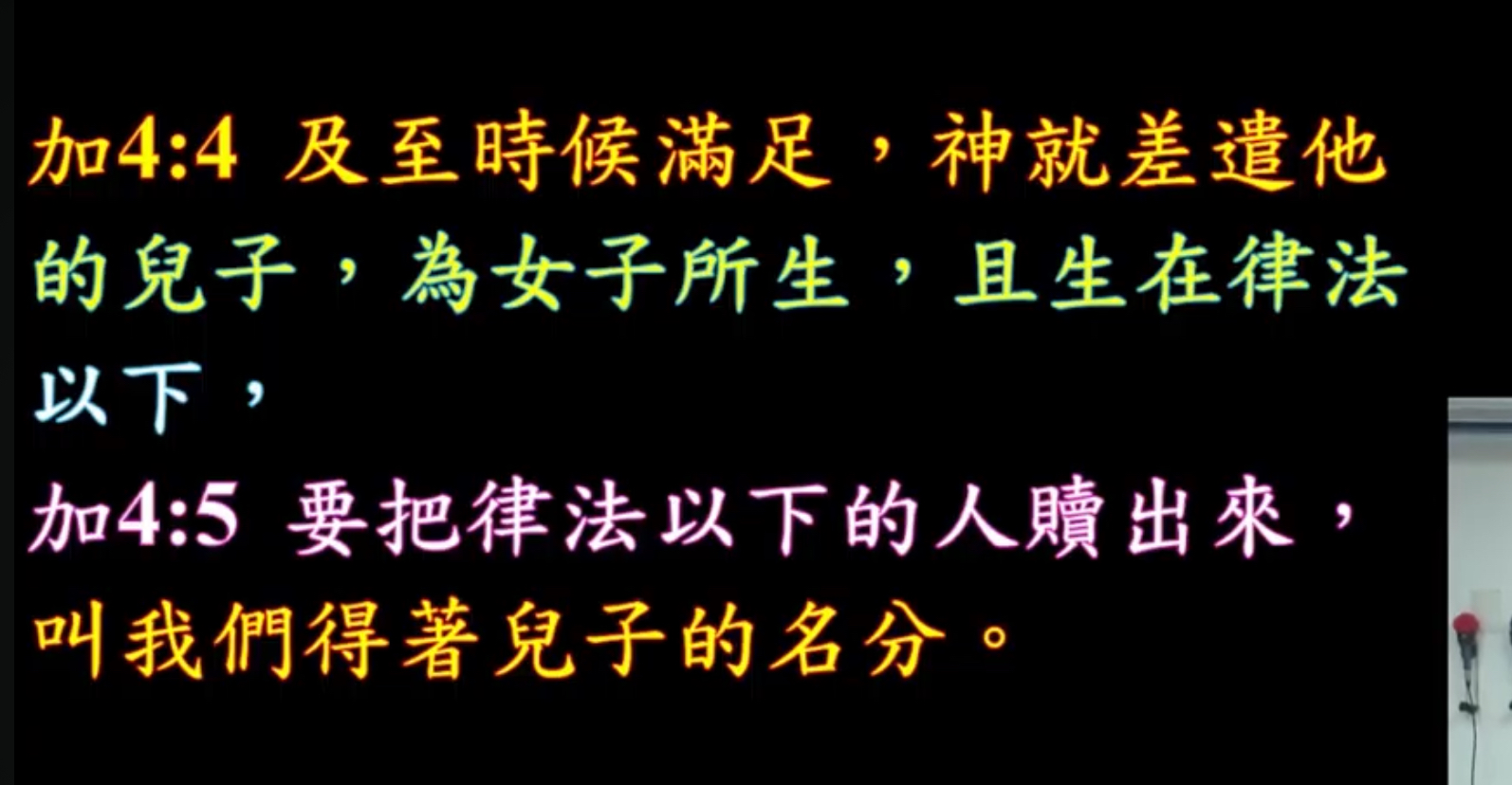 加4:4 及至時候滿足,神就差遣他的兒子,為女子所生,且生在律法以下,5 要把律法以下的人贖出來,叫我們得著兒子的名分。