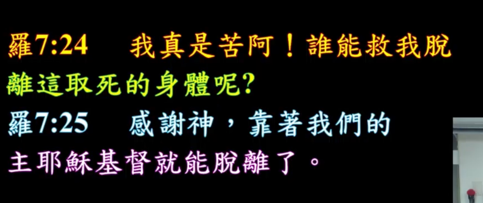 羅7:24 我真是苦阿!誰能救我脫離這取死的身體呢?25 感謝神,靠著我們的主耶穌基督就能脫離了。