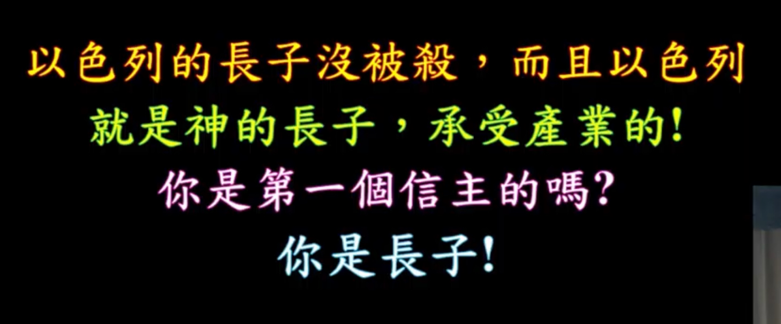 原文的意思,就是這樣子弟兄姊妹,長子,因為被殺,長子是不是全部都被殺?亞薩亞書上說,長子沒有被殺。法老也是長子,對不對?亞薩亞書上說,我特准你不被殺你這個長子不被殺,你要看到我的作為亞薩亞書上說的,不是我說的,弟兄姊妹你是第一個信主的嗎?你是不是第一個信主的?我叫我是第一個信主。