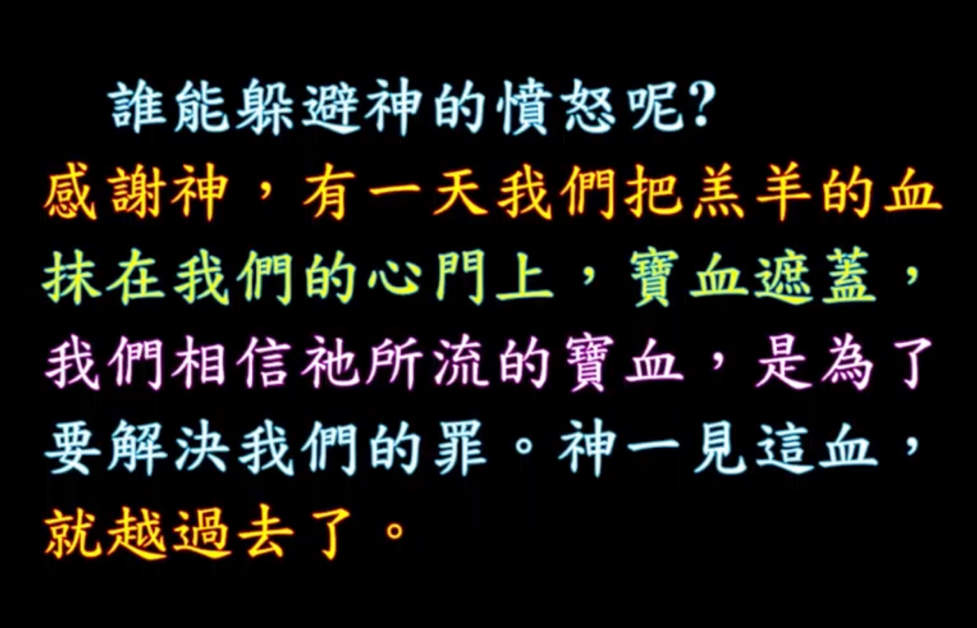 所以可以躲在晚上,很可怕,真的很可怕,弟兄姐妹,剛剛我們的劉牧師說,他現在不怕了,不是因為有電燈,是因為有耶和華神同在,就是得勝的晚上。但是不屬神的人,那個夜就是恐怖,就是哀傷。同樣一個晚上,同樣看到水災,水變血的災,同樣看到青蛙,同樣看到這個下冰雹,