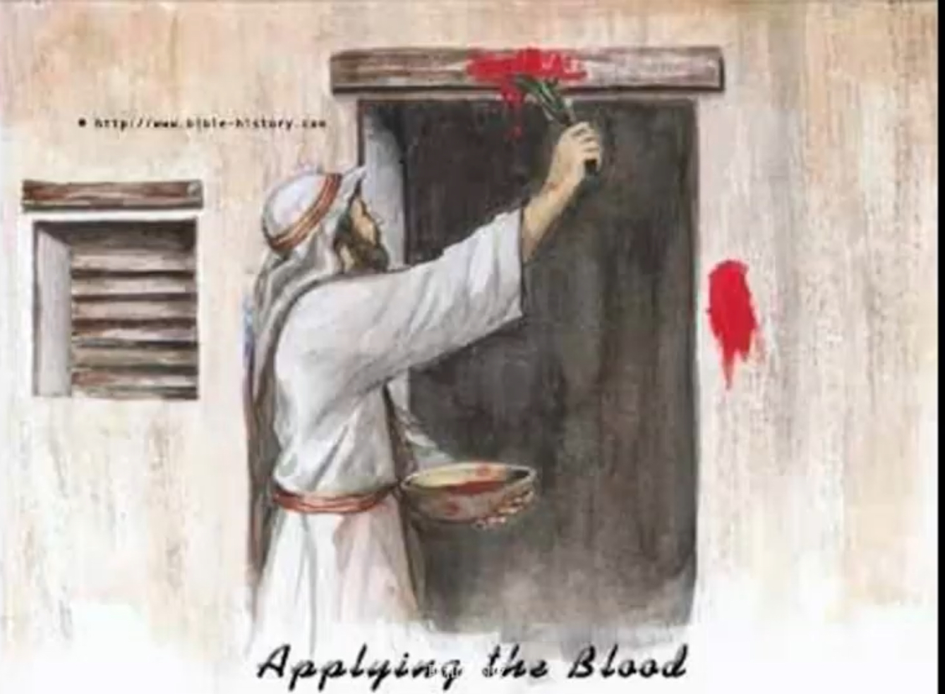 出12:7 各家要取點血,塗在喫羊羔的房屋左右的門框上和門楣上。12-13 ….我要巡行埃及地,把埃及地一切頭生的…都擊殺了…。這血要在你們所住的房屋上做記號;我一見這血,就越過你們去。