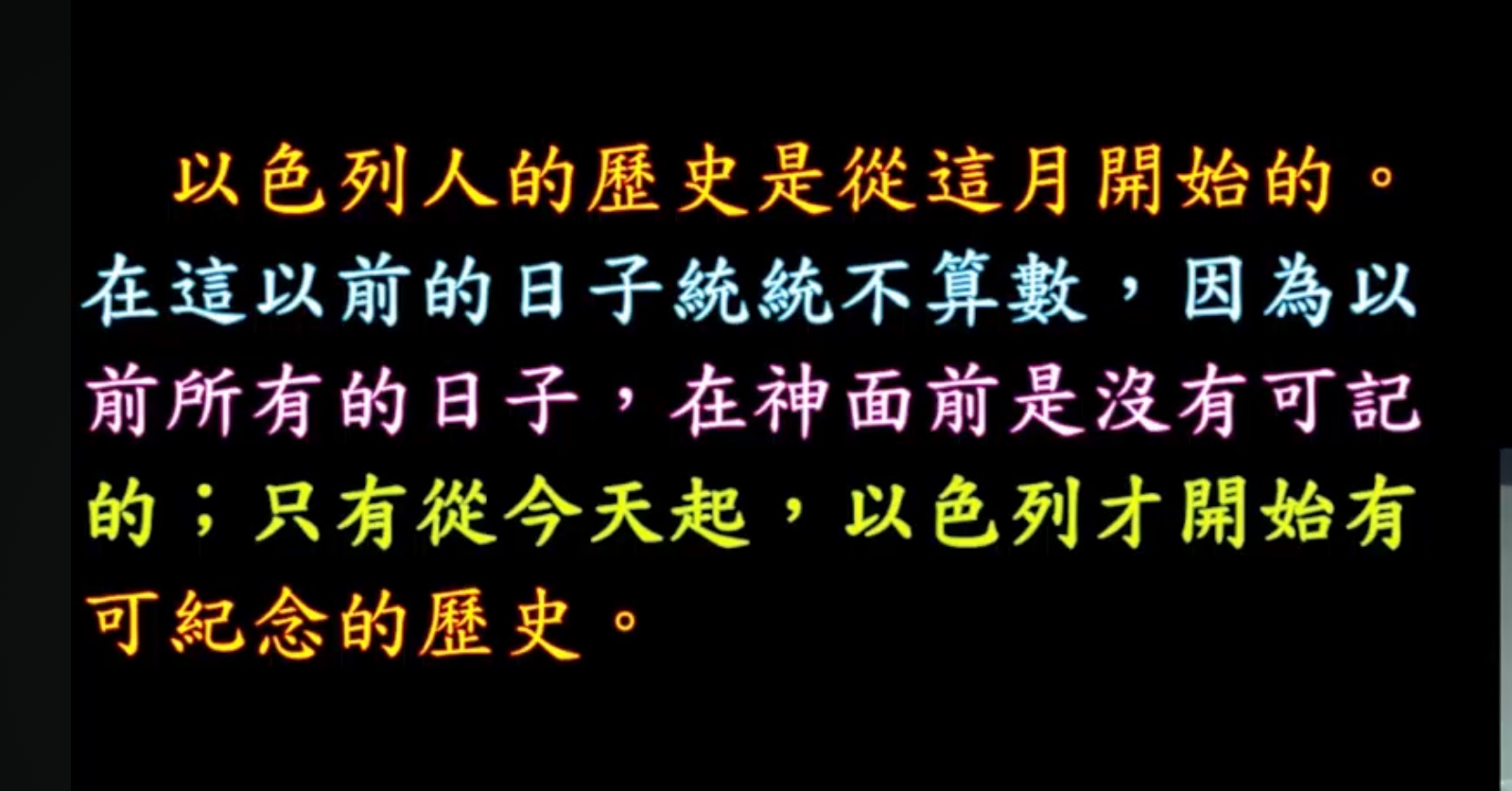 OK,弟兄姊妹,以色列人的歷史就從這個月開始,以色列人的歷史就從今天開始,從今天開始,以前的日子通通不算數,我說的不是神學遺言,我說的是信仰的遺言,弟兄姊妹,在神面前沒有什麼好紀念,從今天開始,以色列人才有可值得紀唸的歷史,請記得這一句話。因為是這個晚上,以色列人出了埃及,那整個以色列的歷史從一夜半才開始,那我們的歷史也是這樣,同聲開口來讀。