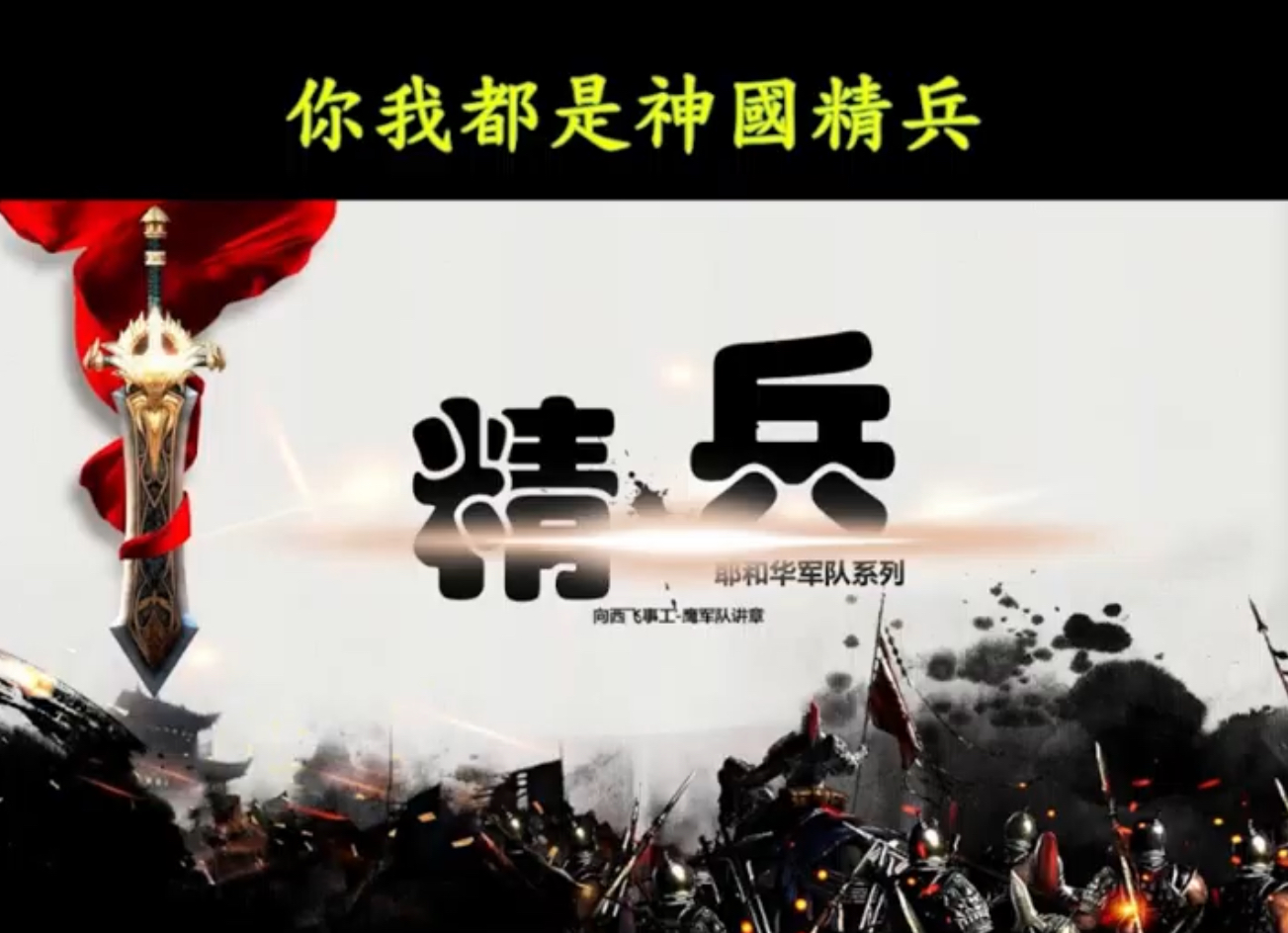 軍隊是要打勝仗的,軍隊是昂然無稽的,軍隊就是帶著兵器可以上去的。正滿了430年的那一天,日期滿足了,你信耶穌的,你就要成為耶和華的軍隊。你我都是神國的精兵,來,跟你旁邊的人說,你我都是神國的精兵。