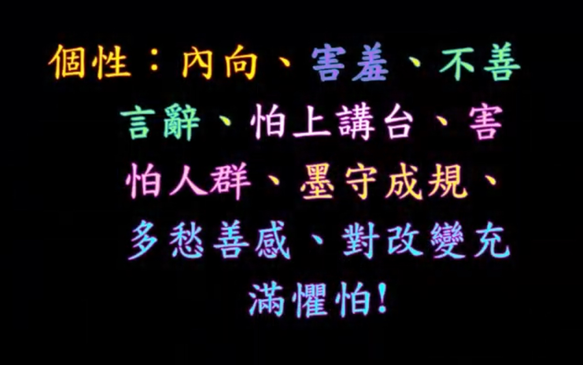 你們都沒有聽過我錄音帶,沒有看過紀錄要金日報。我是一個憂鬱症蝸牛,憂鬱症七十年的。劉牧師你不知道嗎?他跟我在一起這麼久,不曉得我憂鬱症,他不關心我嘛,你看。得過憂鬱症七十年,走過憂鬱症七十年,到今天還沒有走出來,沒有走出來。憂鬱症不會好,所以我沒有走出來,我還在憂鬱症。我這種個性,內向,害羞,不喜歡講話,怕上講臺,上了講臺以後就結結巴巴,然後就怎麼樣,眼紅脖子粗,