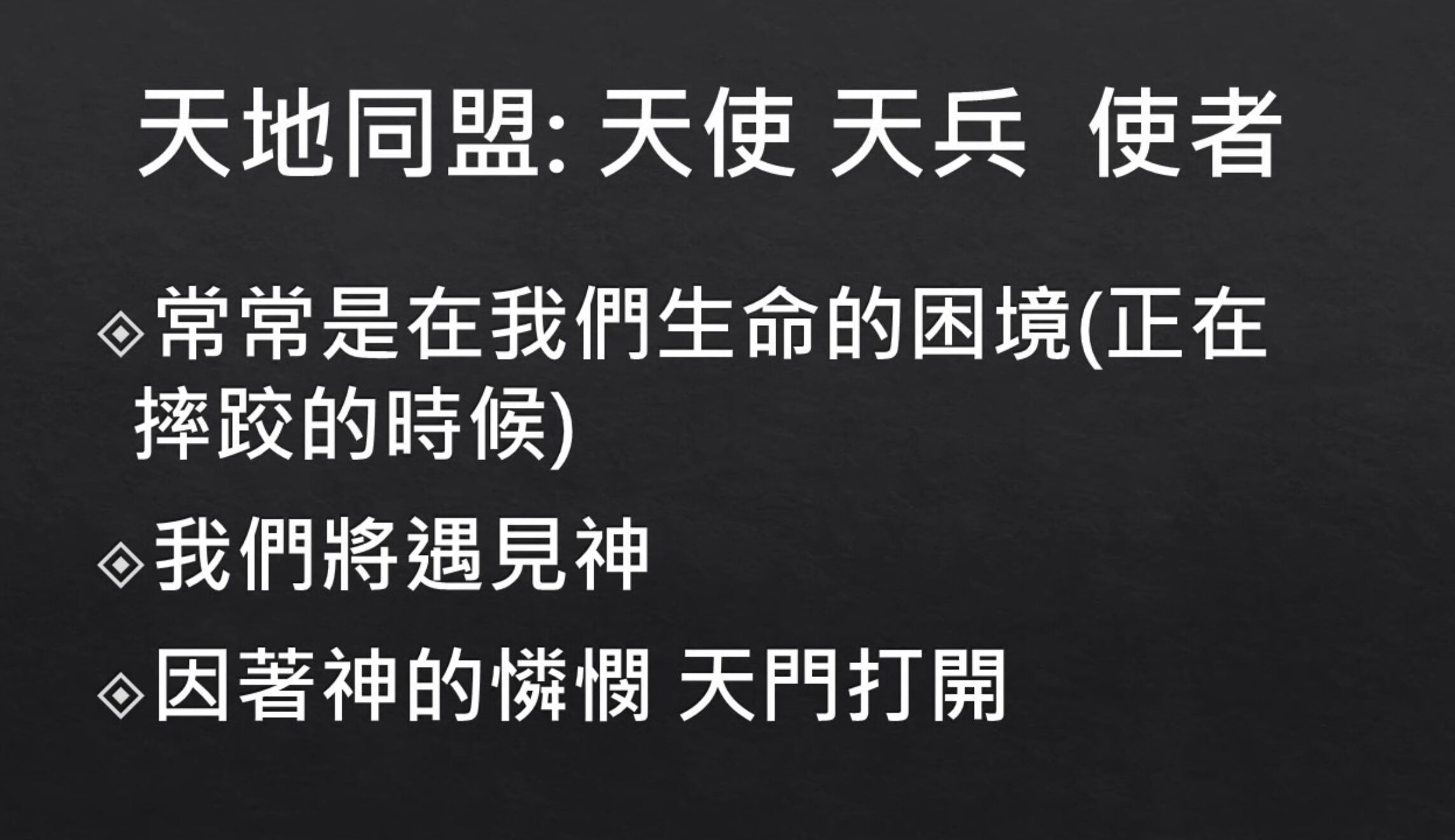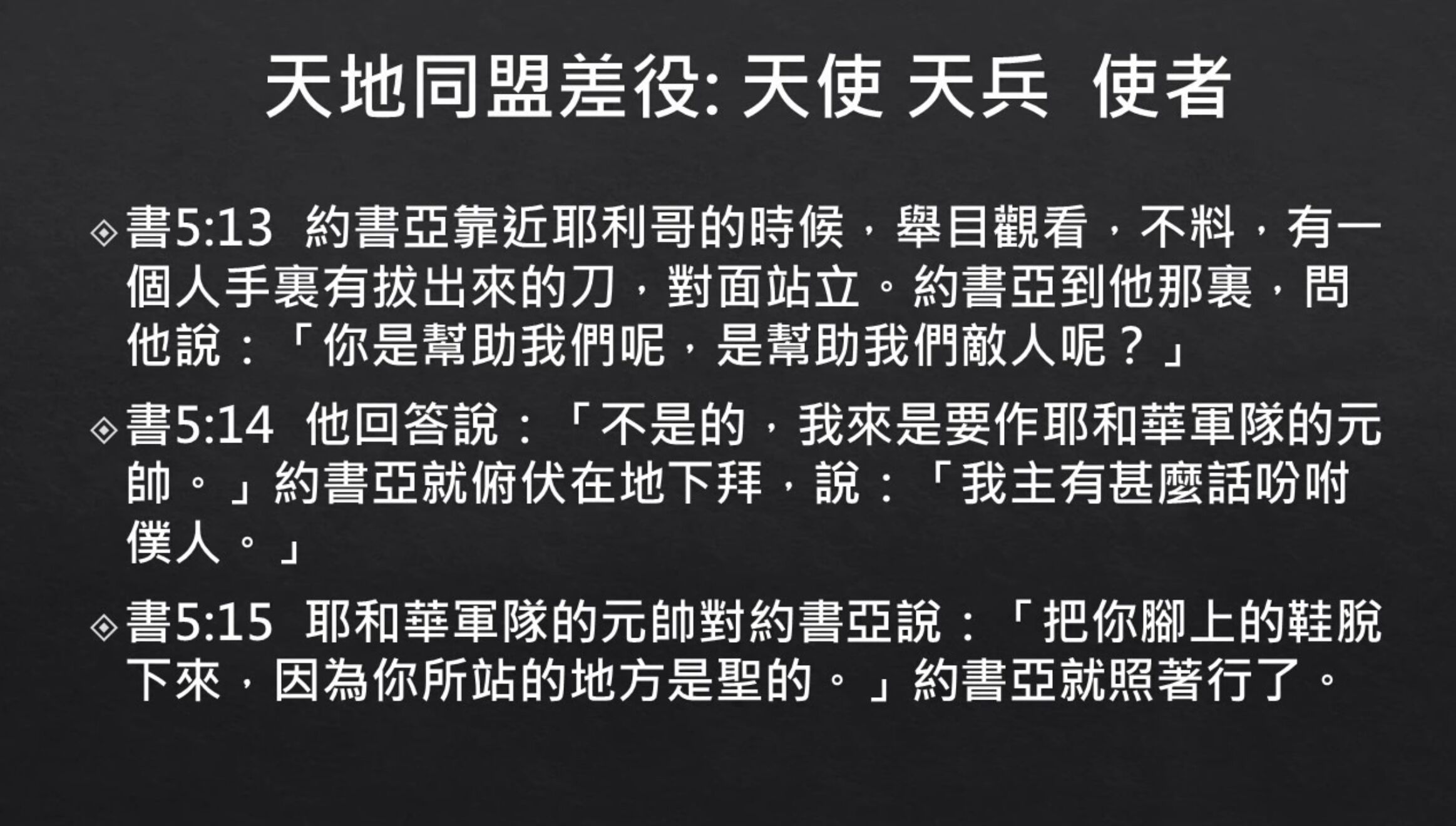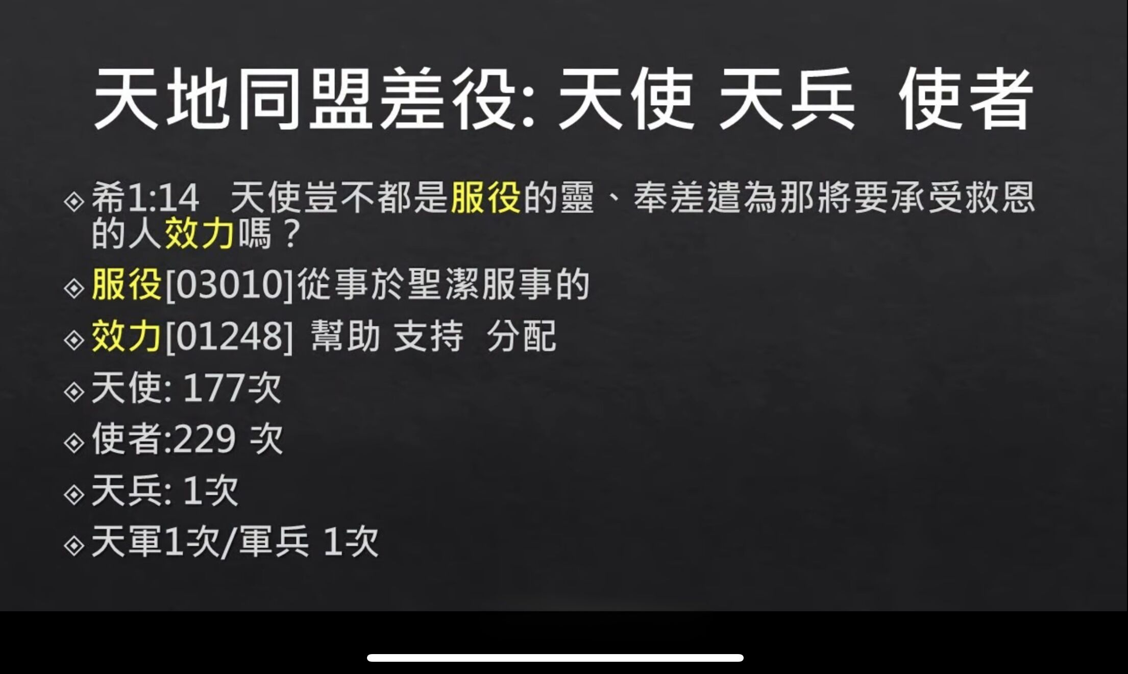核心經文:希伯來書 1:14「天使豈不都是服役的靈,奉差遣,為那將要承受救恩的人效力嗎?」