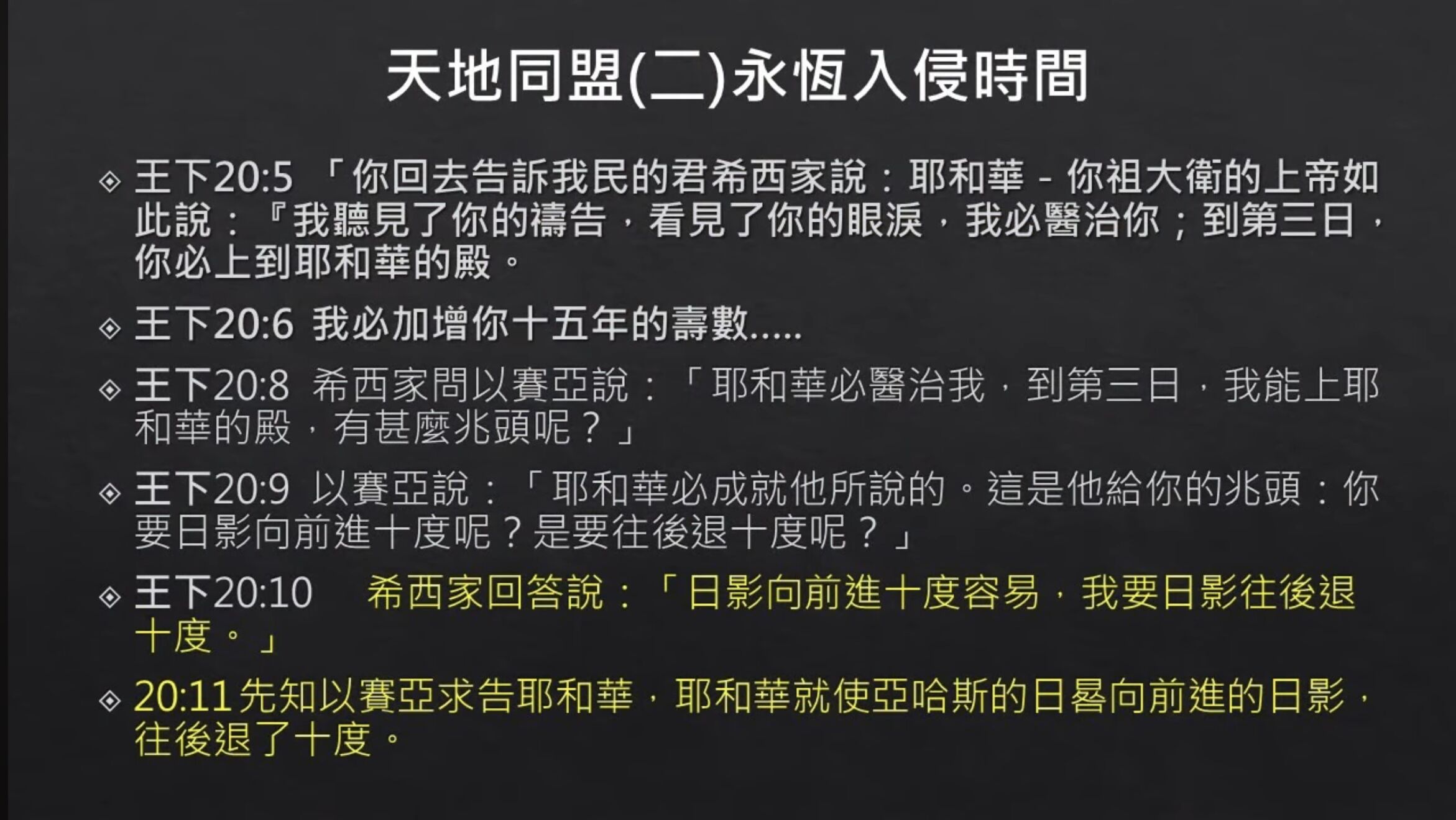 約書亞日月止住、西西家延壽與日影後退:神能掌管時間並給記號。